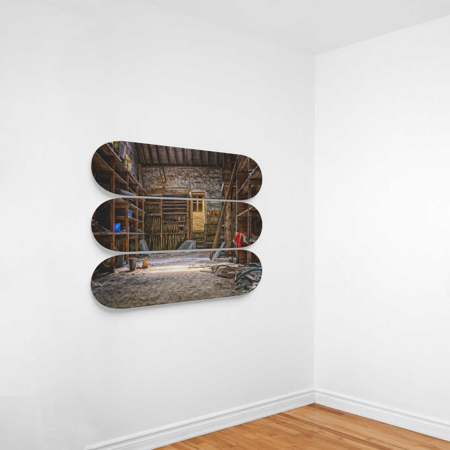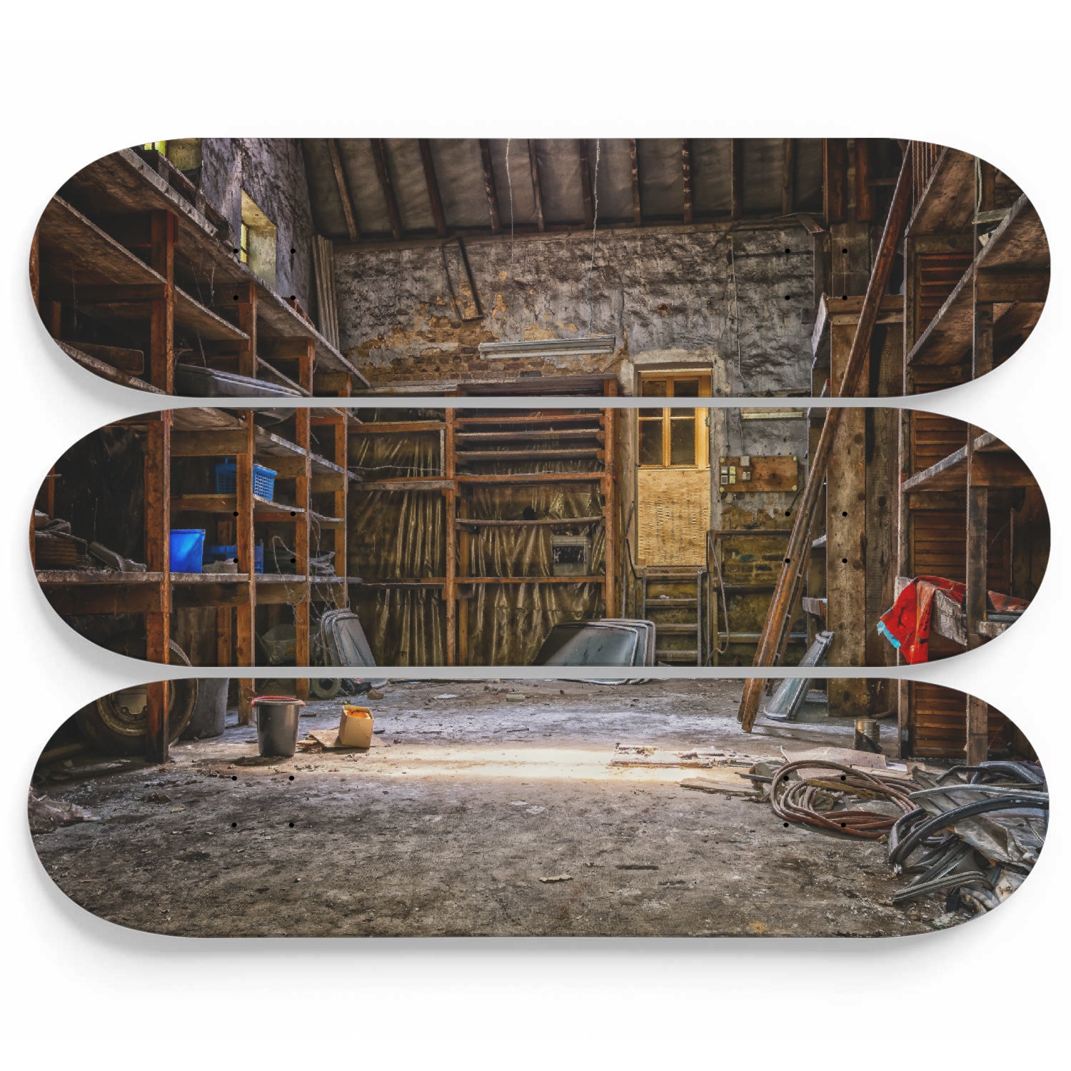This set of 3 high-quality 7-ply 100% maple skateboards are the perfect statement piece for any home or office. Custom printed graphics, one-of-a-kind art piece.