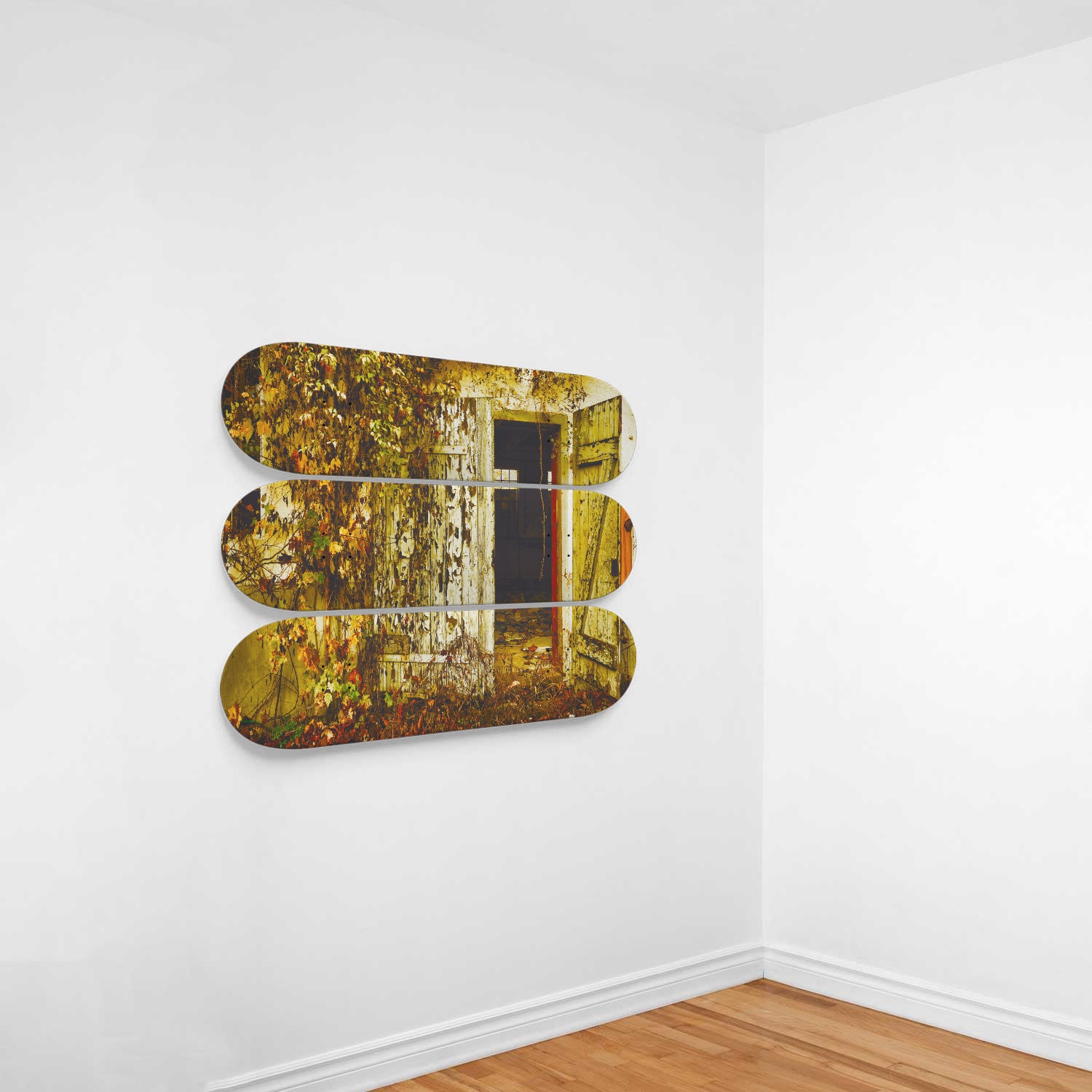 This set of 3 high-quality 7-ply 100% maple skateboards are the perfect statement piece for any home or office. Custom printed graphics, one-of-a-kind art piece.