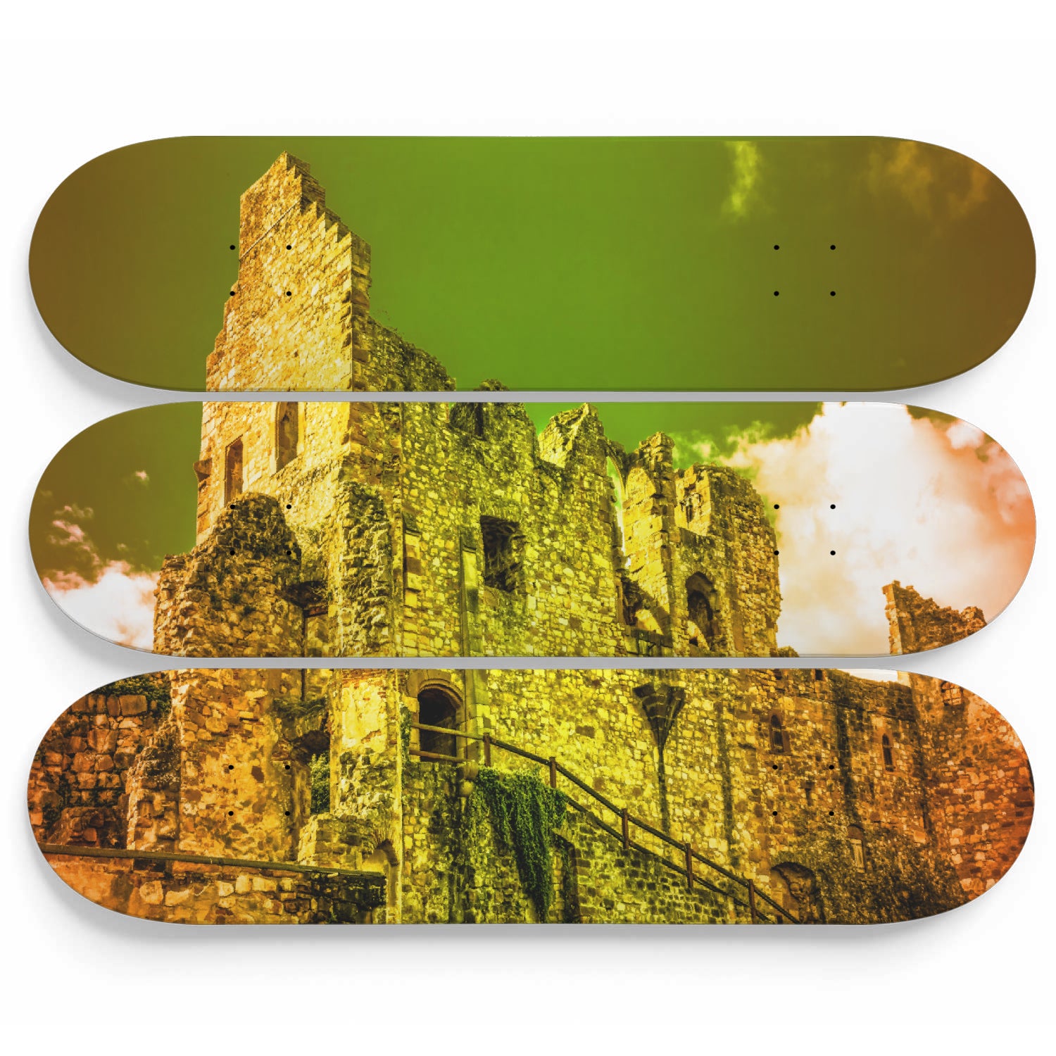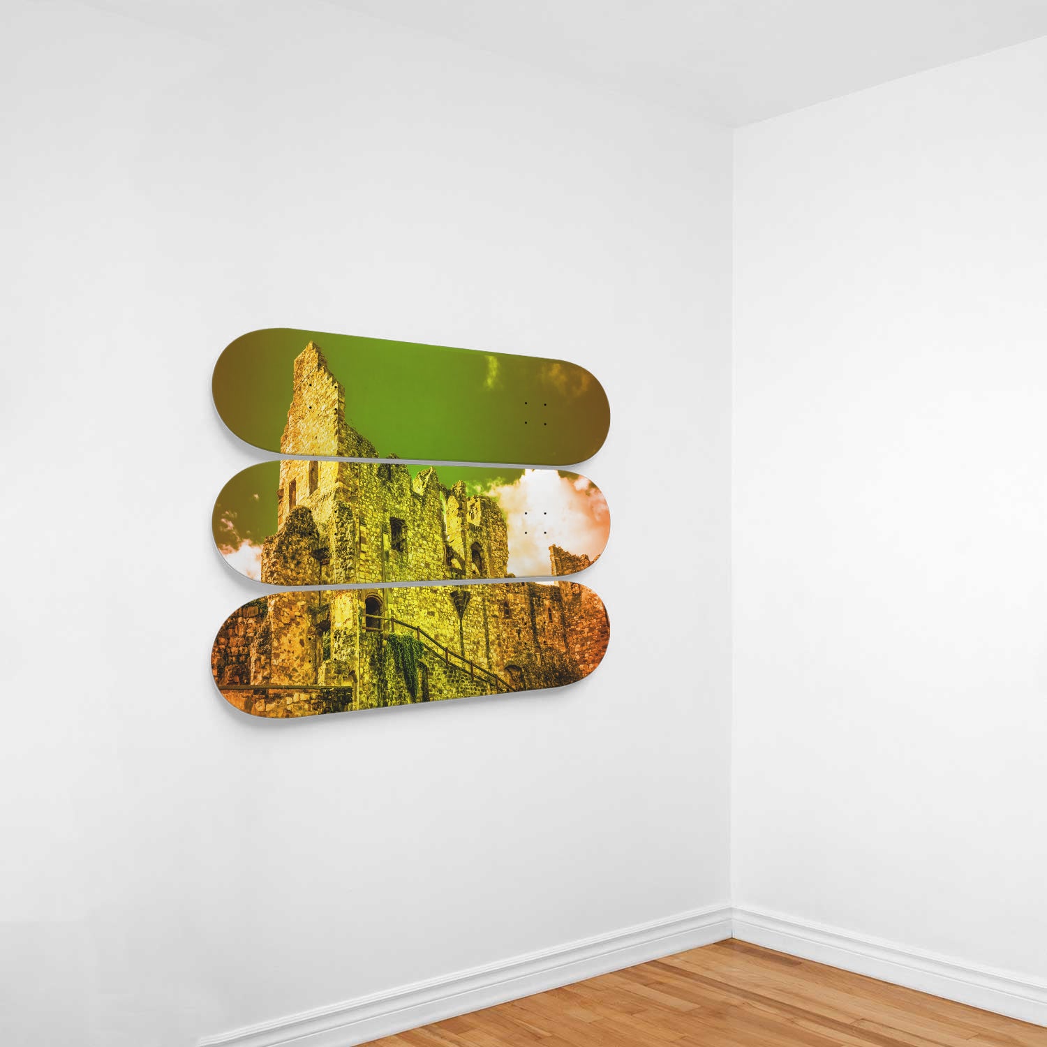 This set of 3 high-quality 7-ply 100% maple skateboards are the perfect statement piece for any home or office. Custom printed graphics, one-of-a-kind art piece.