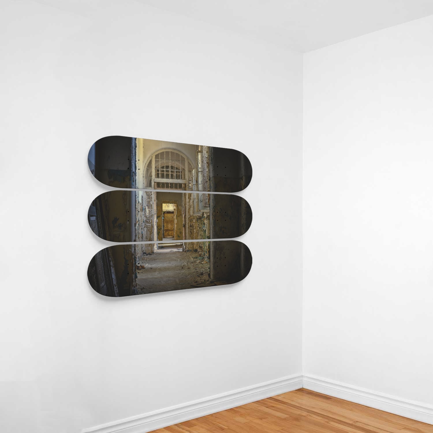 This set of 3 high-quality 7-ply 100% maple skateboards are the perfect statement piece for any home or office. Custom printed graphics, one-of-a-kind art piece.