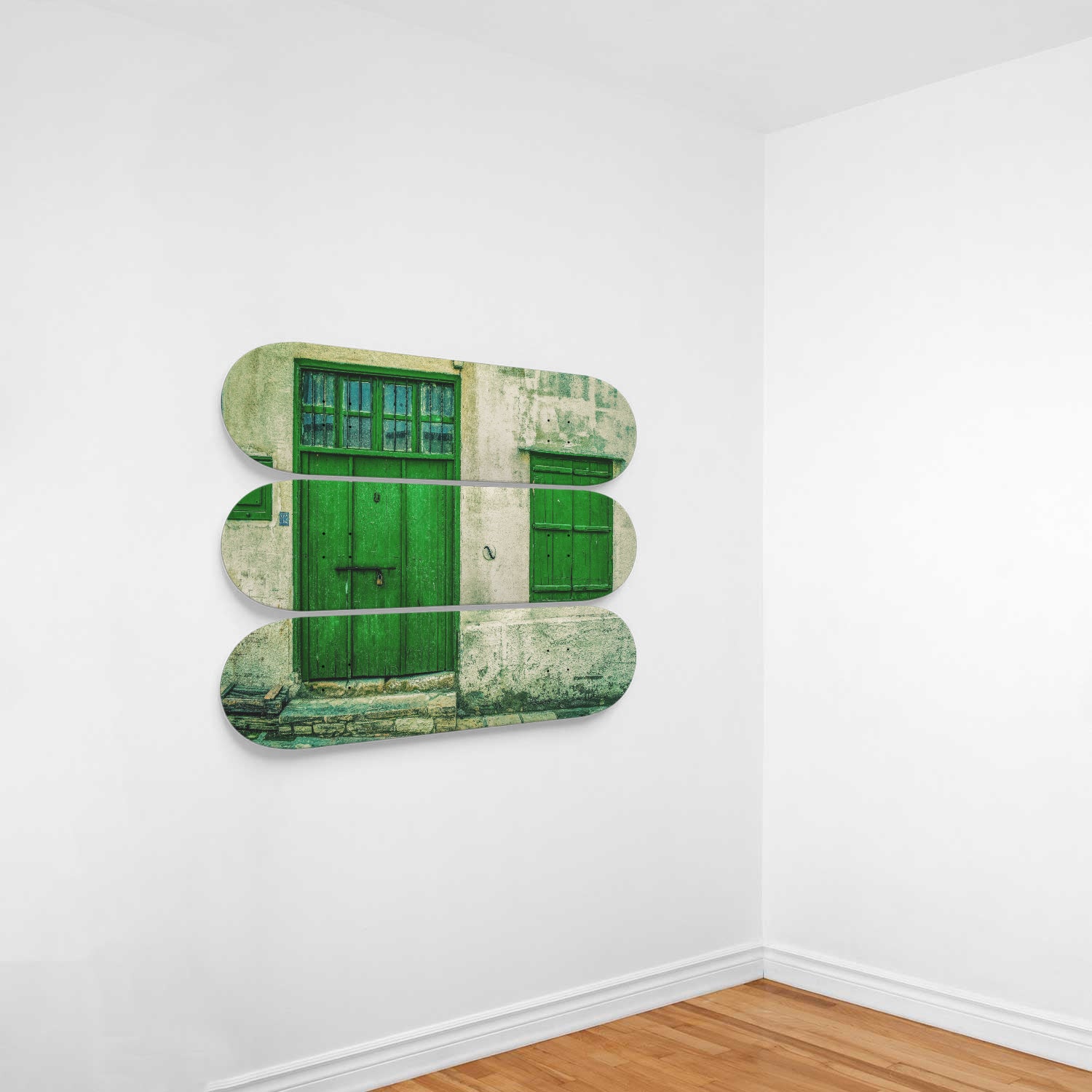 This set of 3 high-quality 7-ply 100% maple skateboards are the perfect statement piece for any home or office. Custom printed graphics, one-of-a-kind art piece.