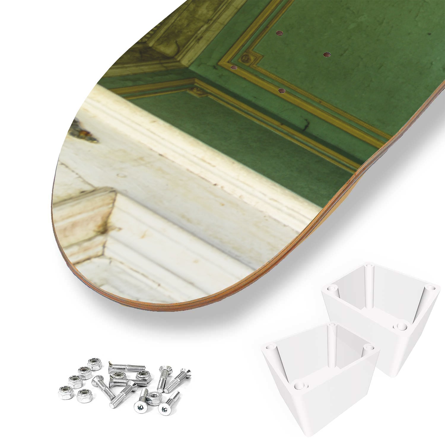 This set of 3 high-quality 7-ply 100% maple skateboards are the perfect statement piece for any home or office. Custom printed graphics, one-of-a-kind art piece.