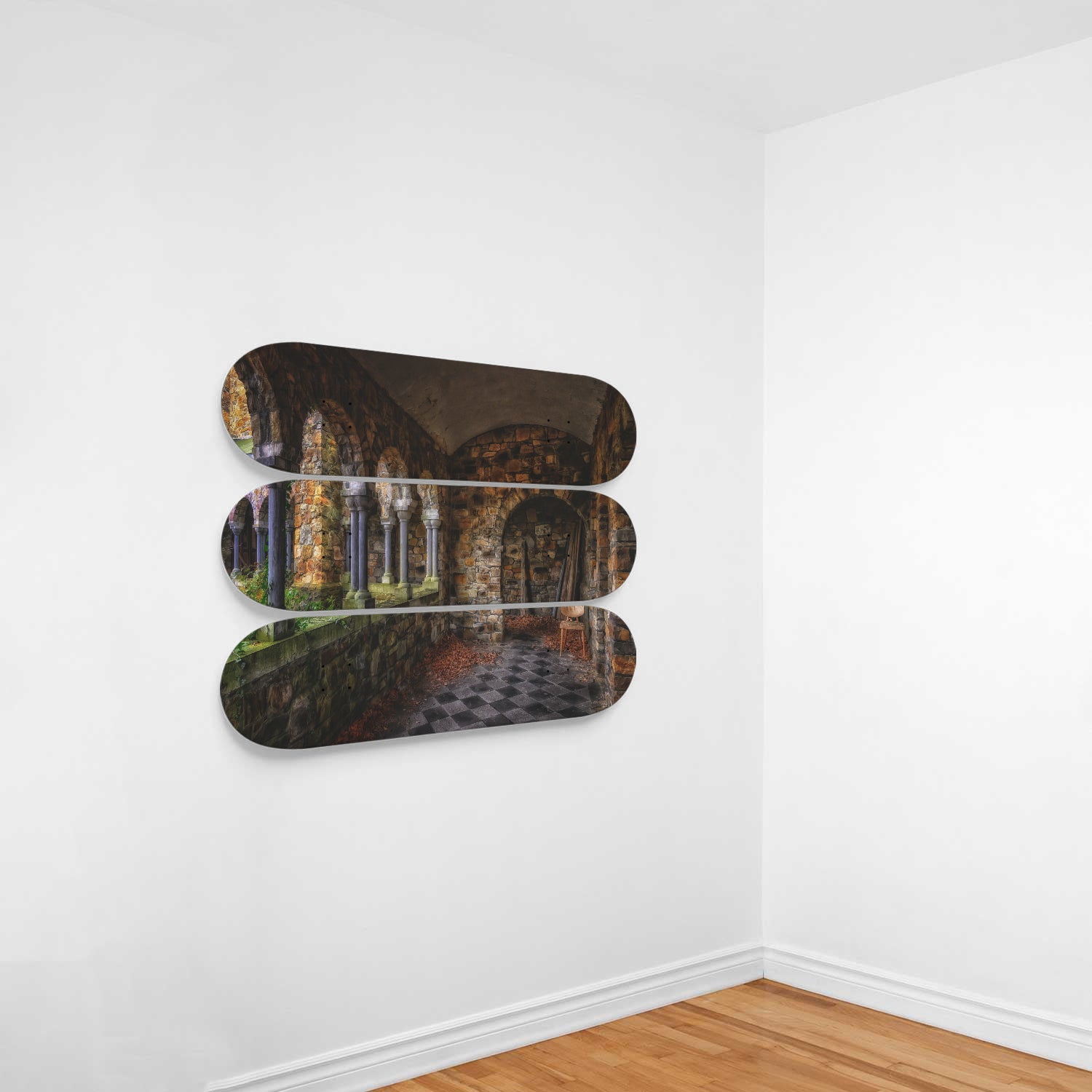 This set of 3 high-quality 7-ply 100% maple skateboards are the perfect statement piece for any home or office. Custom printed graphics, one-of-a-kind art piece.