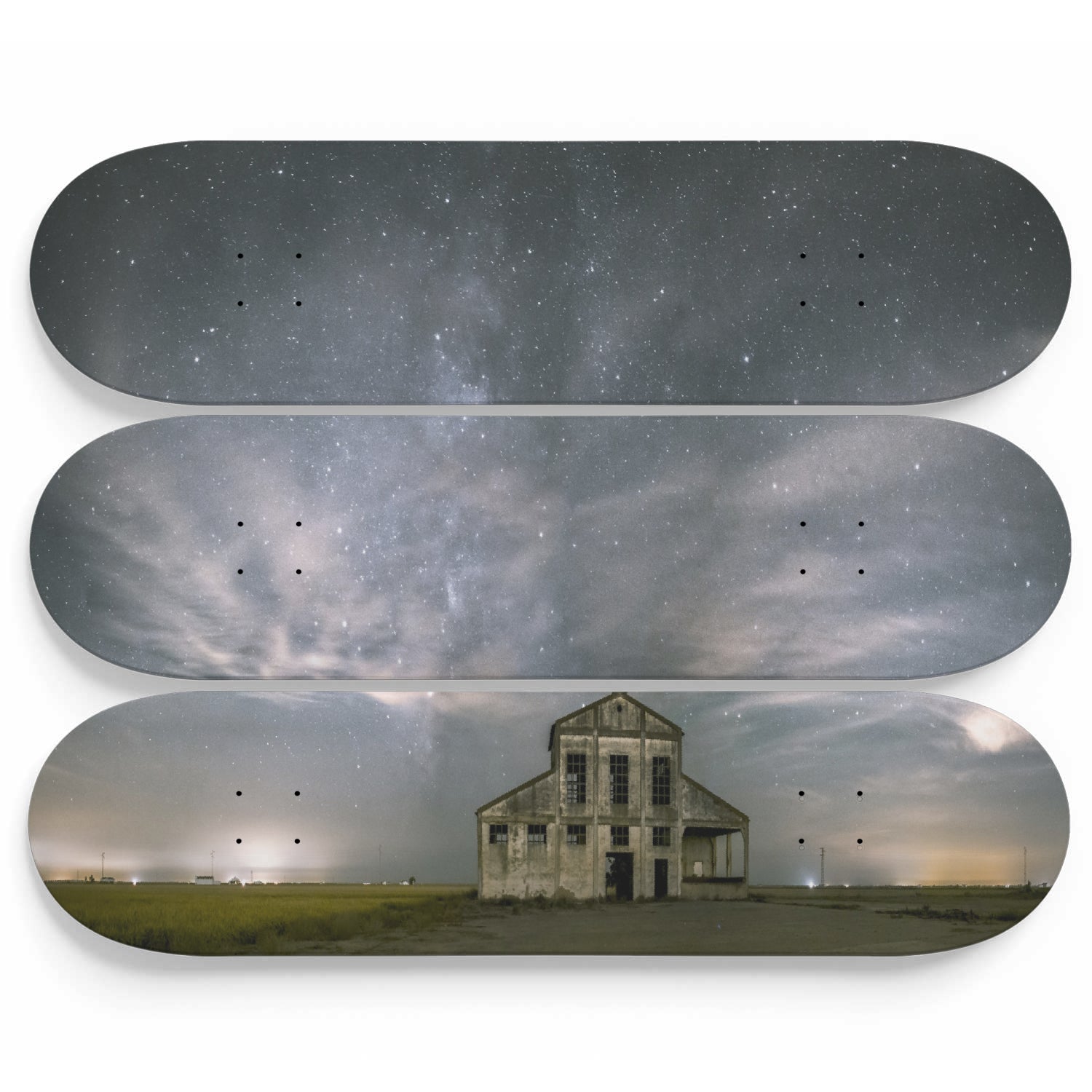 This set of 3 high-quality 7-ply 100% maple skateboards are the perfect statement piece for any home or office. Custom printed graphics, one-of-a-kind art piece.