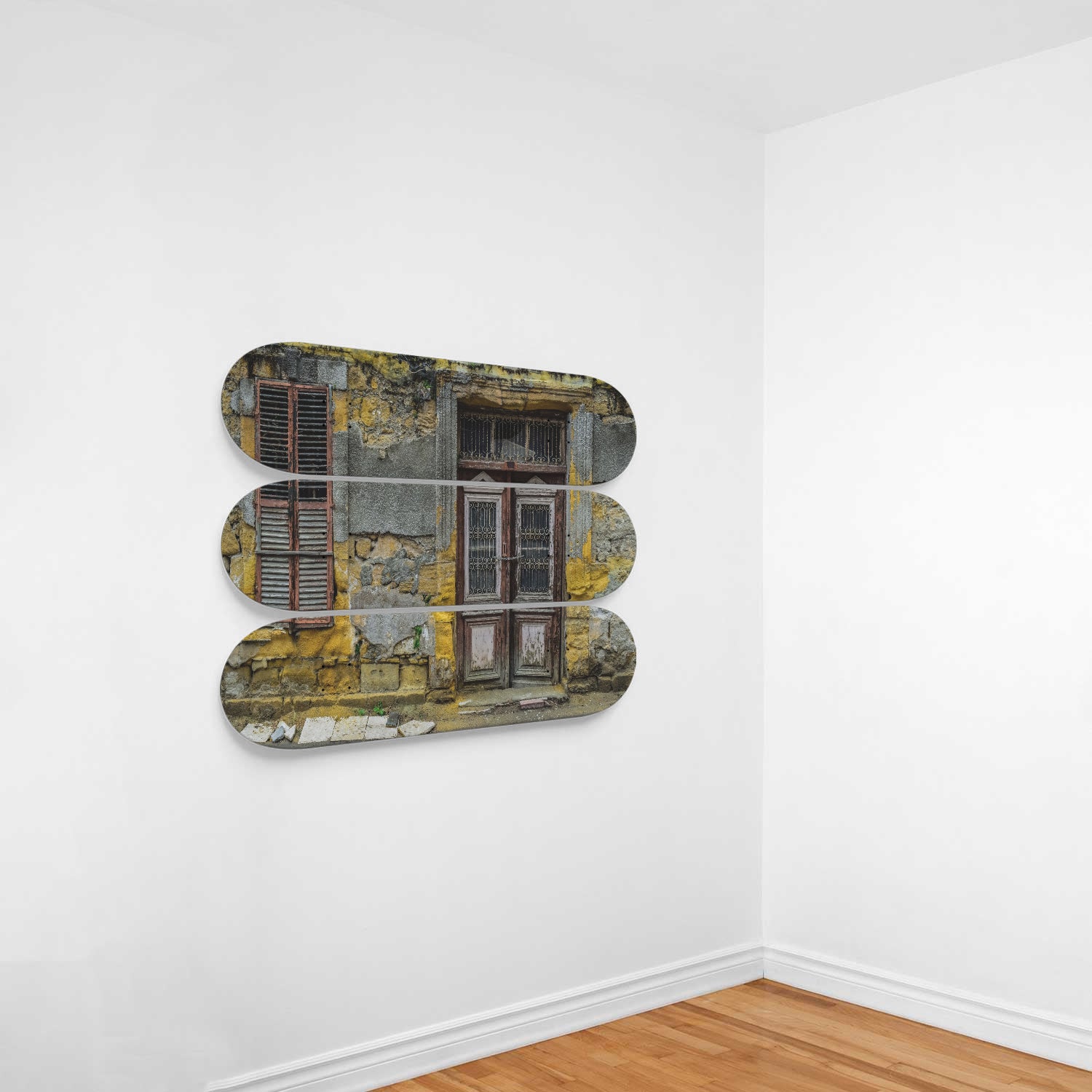 This set of 3 high-quality 7-ply 100% maple skateboards are the perfect statement piece for any home or office. Custom printed graphics, one-of-a-kind art piece.