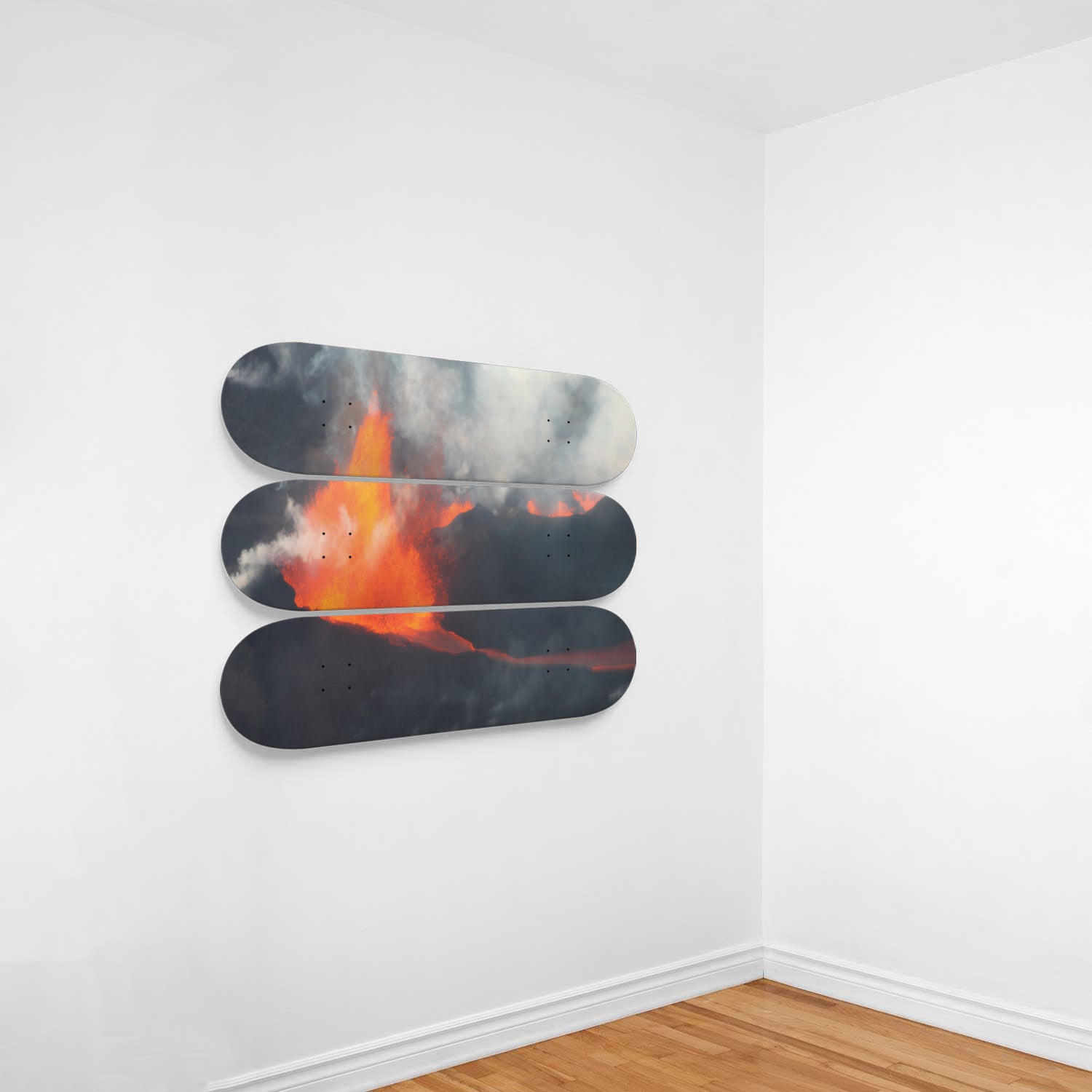 This set of 3 high-quality 7-ply 100% maple skateboards are the perfect statement piece for any home or office. Custom printed graphics, one-of-a-kind art piece.
