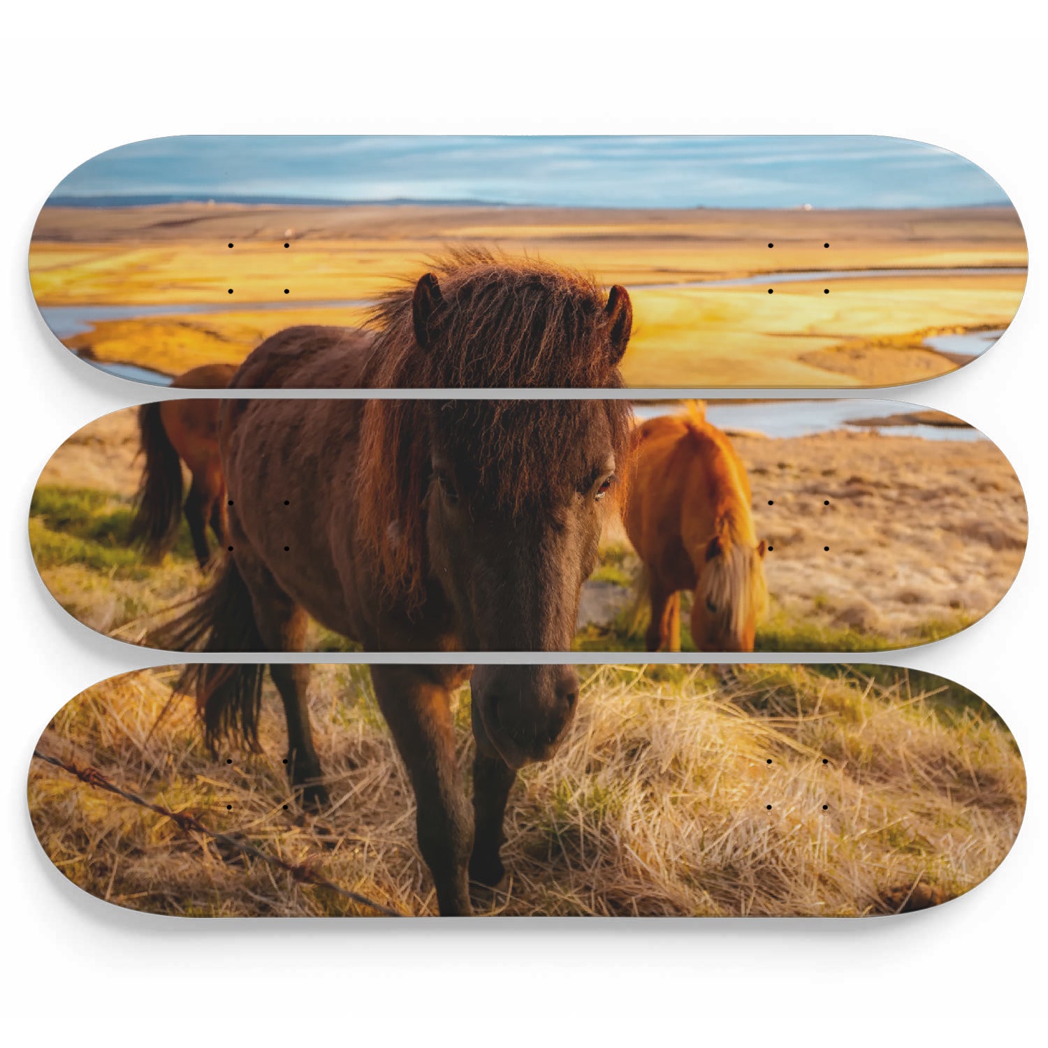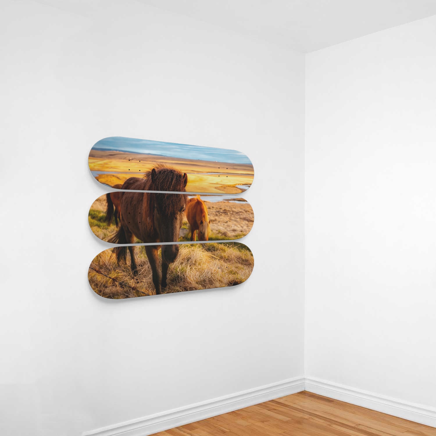 This set of 3 high-quality 7-ply 100% maple skateboards are the perfect statement piece for any home or office. Custom printed graphics, one-of-a-kind art piece.