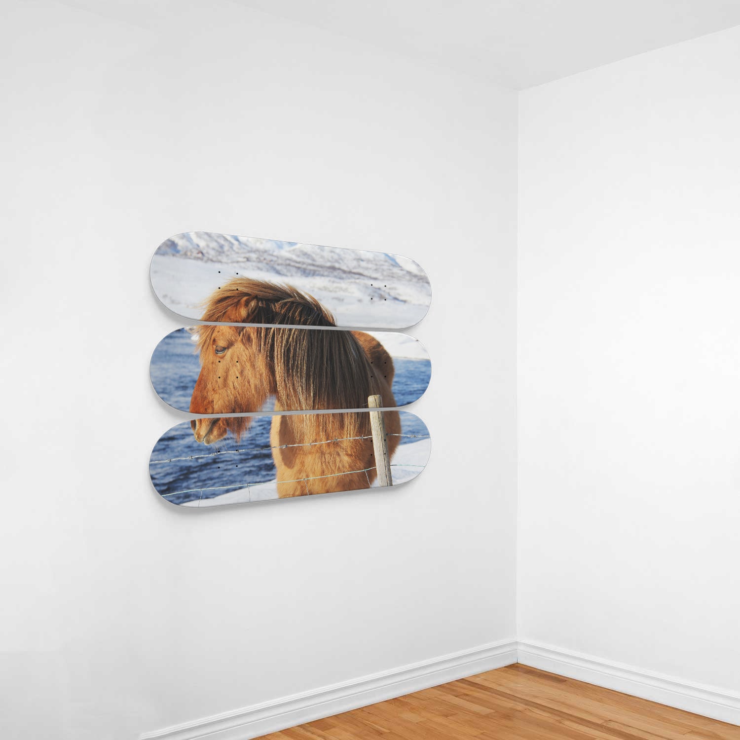 This set of 3 high-quality 7-ply 100% maple skateboards are the perfect statement piece for any home or office. Custom printed graphics, one-of-a-kind art piece.