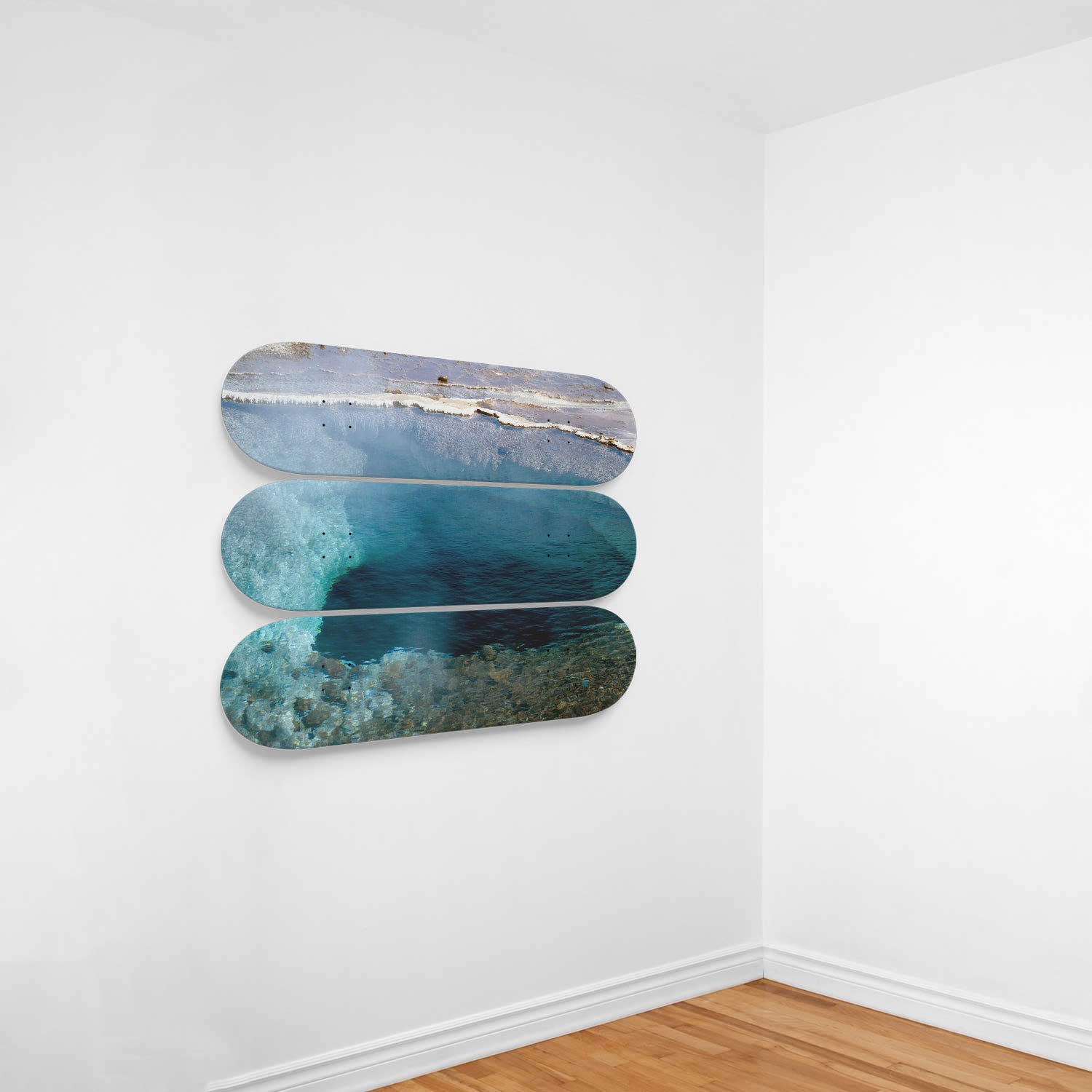 This set of 3 high-quality 7-ply 100% maple skateboards are the perfect statement piece for any home or office. Custom printed graphics, one-of-a-kind art piece.