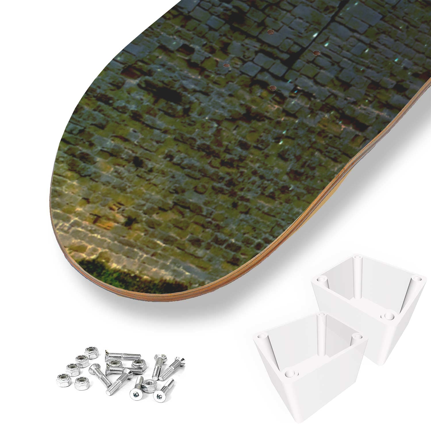 This set of 3 high-quality 7-ply 100% maple skateboards are the perfect statement piece for any home or office. Custom printed graphics, one-of-a-kind art piece.