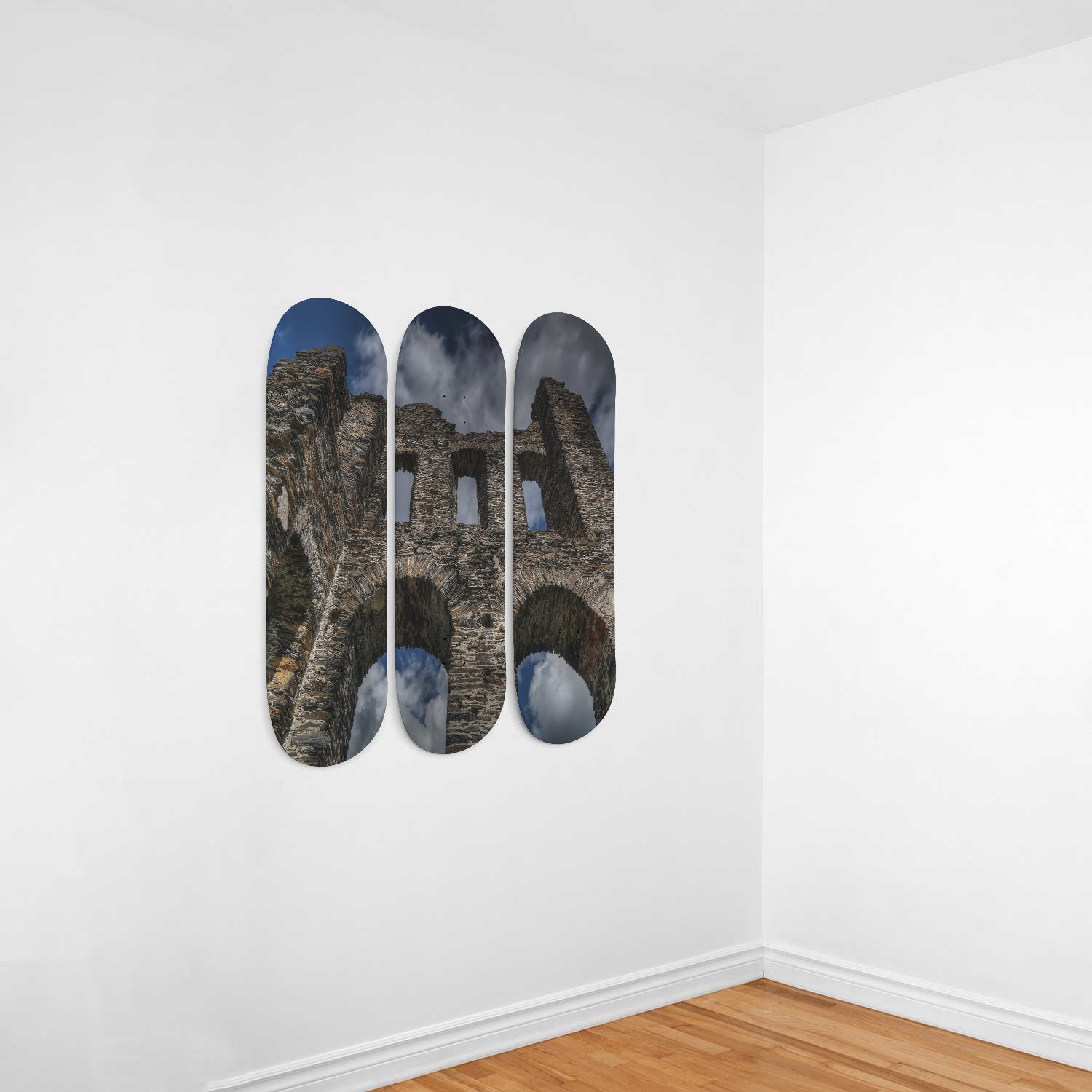This set of 3 high-quality 7-ply 100% maple skateboards are the perfect statement piece for any home or office. Custom printed graphics, one-of-a-kind art piece.