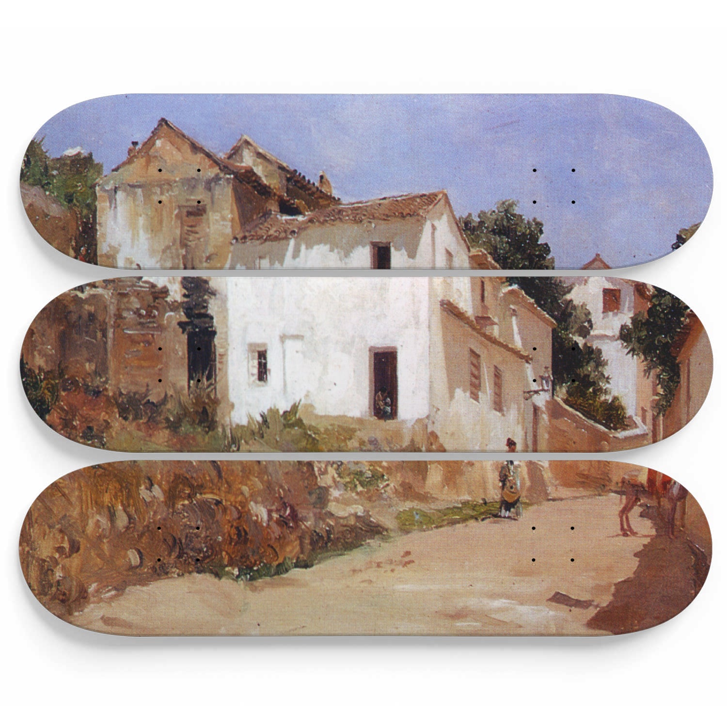 This set of 3 high-quality 7-ply 100% maple skateboards are the perfect statement piece for any home or office. Custom printed graphics, one-of-a-kind art piece.