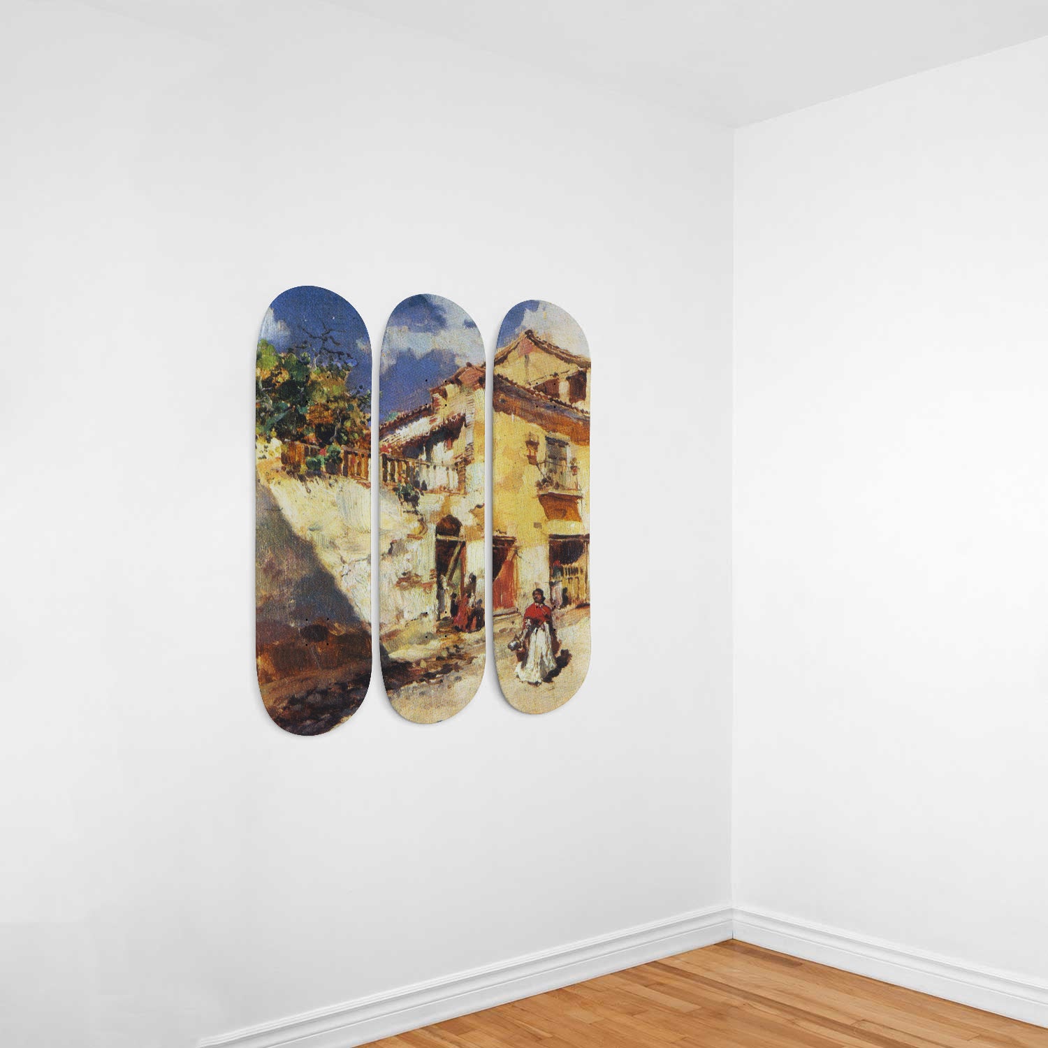 This set of 3 high-quality 7-ply 100% maple skateboards are the perfect statement piece for any home or office. Custom printed graphics, one-of-a-kind art piece.