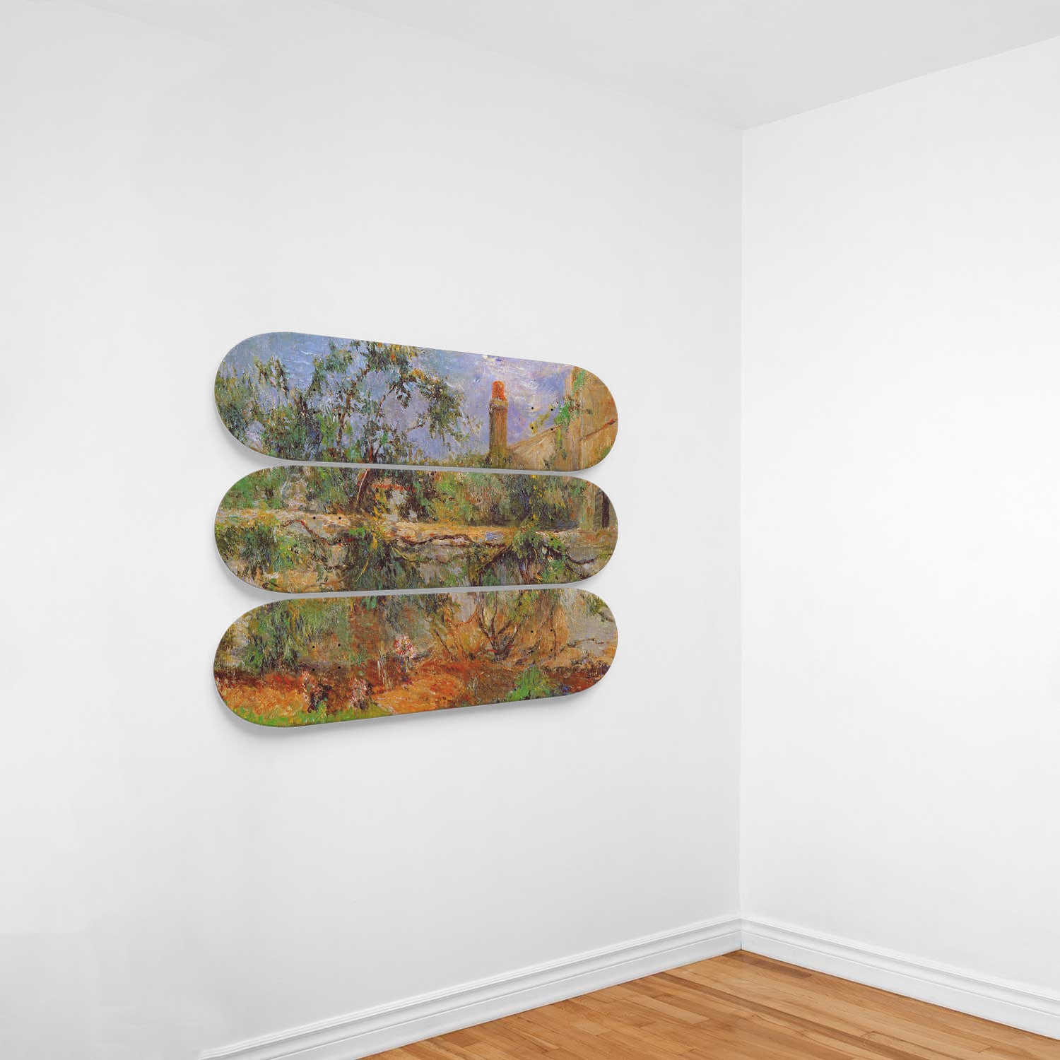 This set of 3 high-quality 7-ply 100% maple skateboards are the perfect statement piece for any home or office. Custom printed graphics, one-of-a-kind art piece.