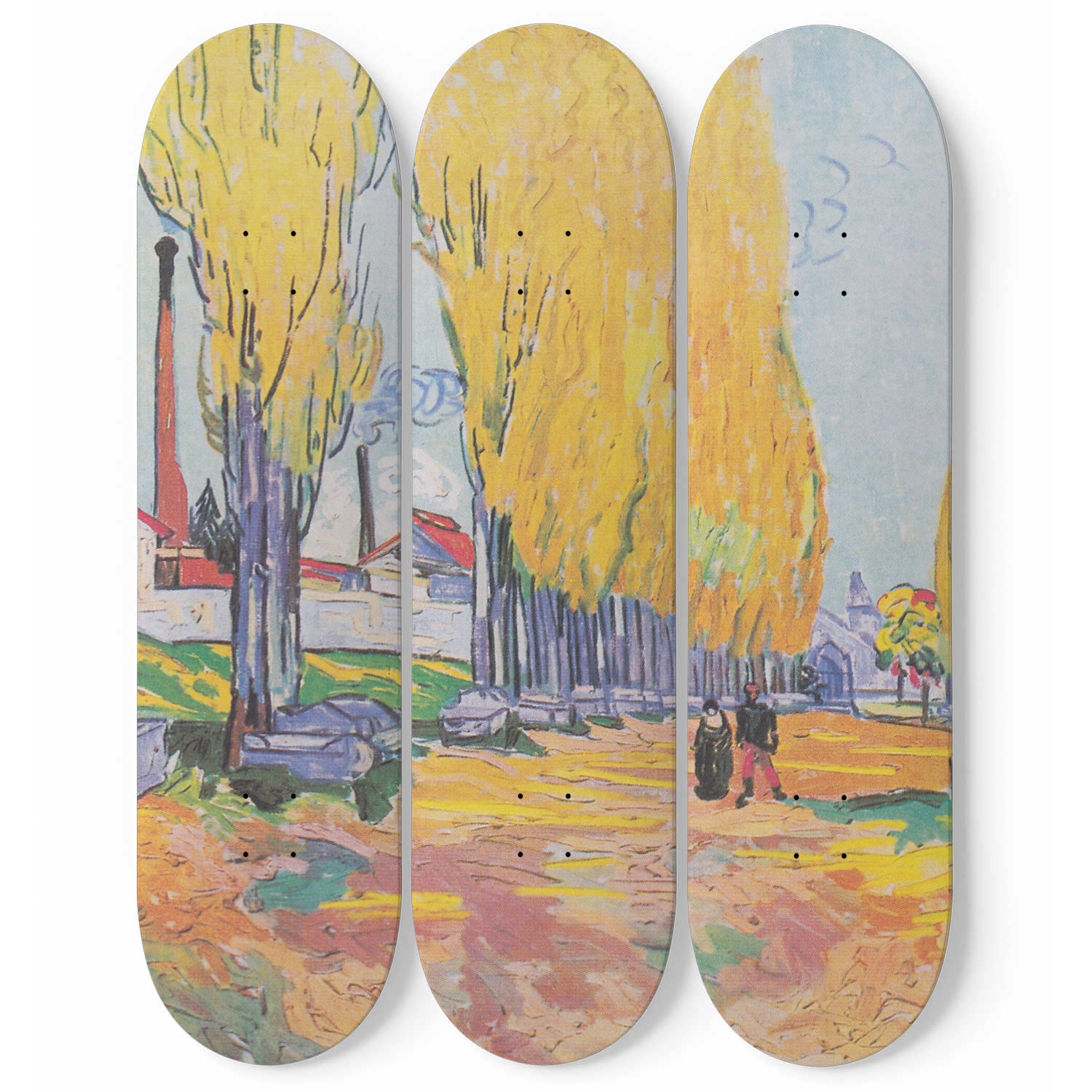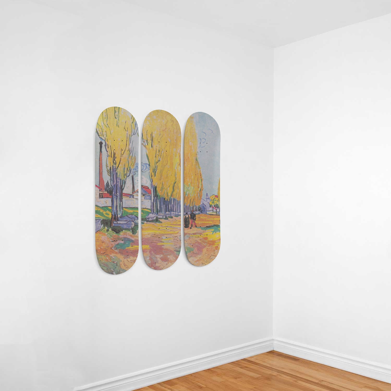 This set of 3 high-quality 7-ply 100% maple skateboards are the perfect statement piece for any home or office. Custom printed graphics, one-of-a-kind art piece.