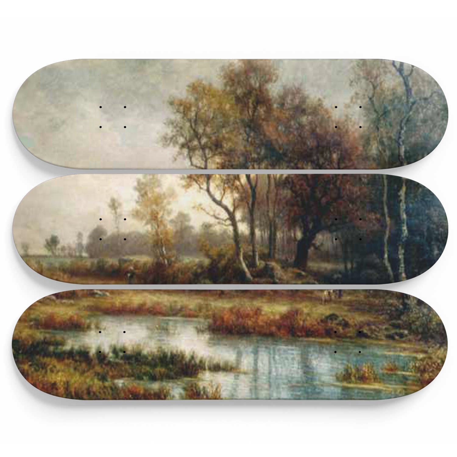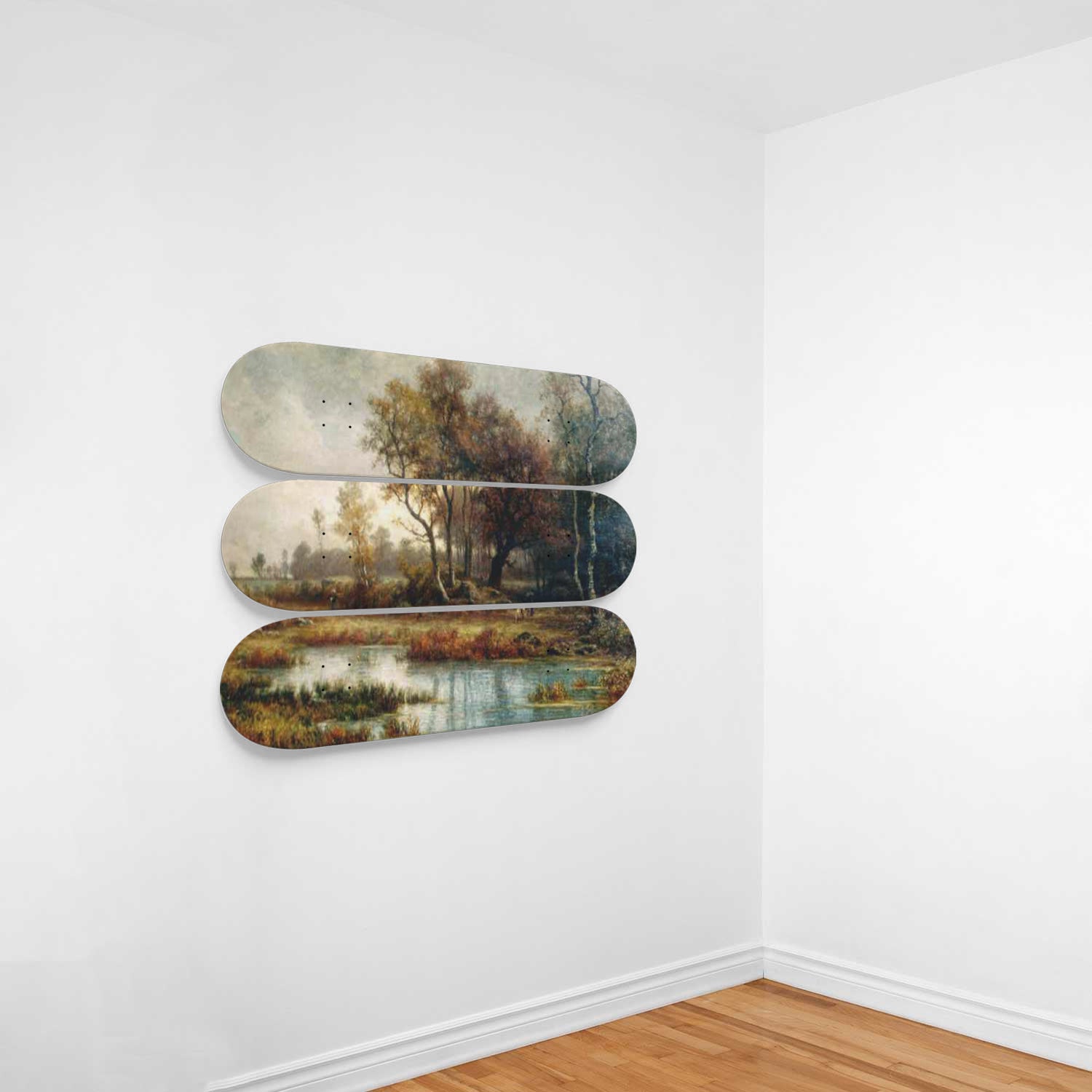 This set of 3 high-quality 7-ply 100% maple skateboards are the perfect statement piece for any home or office. Custom printed graphics, one-of-a-kind art piece.