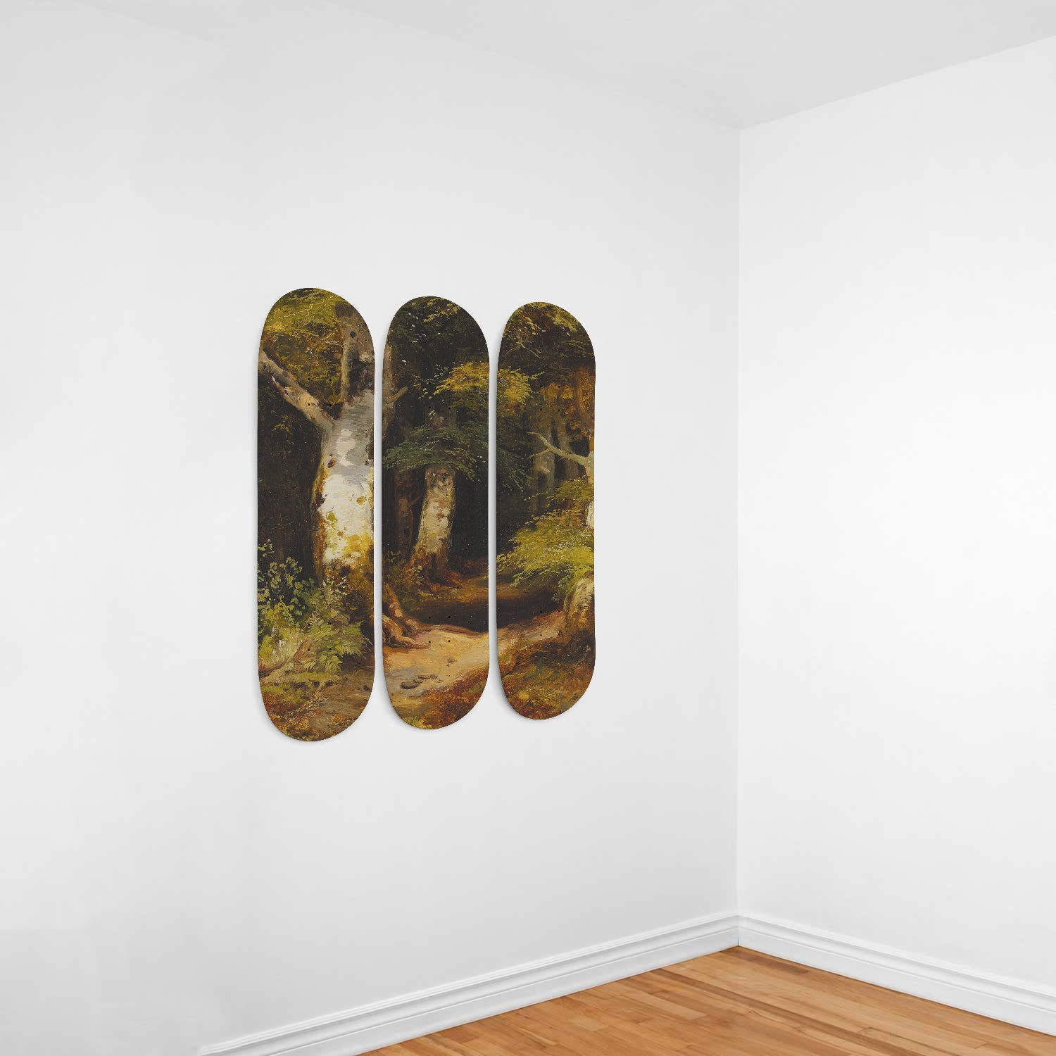 This set of 3 high-quality 7-ply 100% maple skateboards are the perfect statement piece for any home or office. Custom printed graphics, one-of-a-kind art piece.